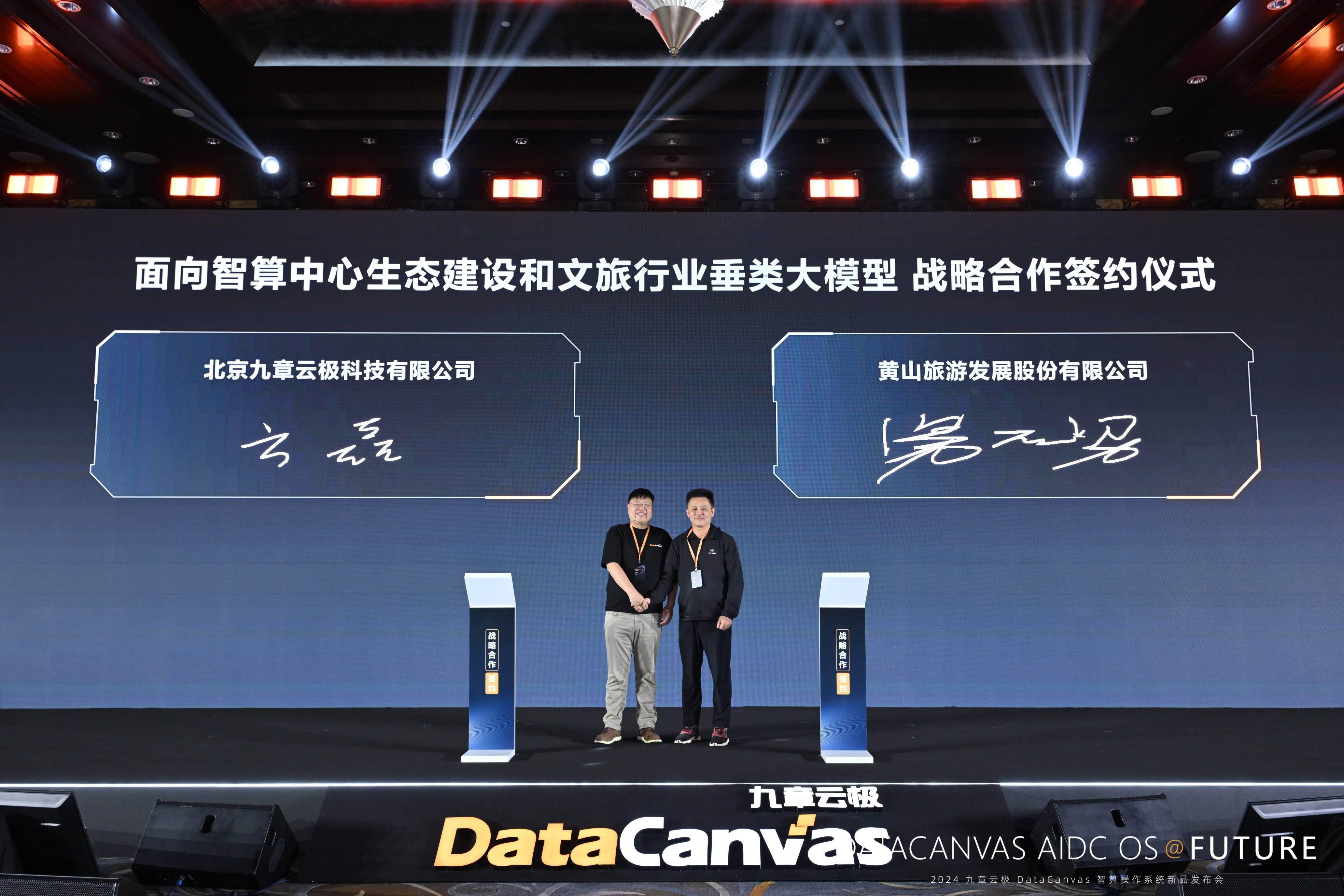 基于大模型领先技术优势和丰厚的智算生态资源,九章云极DataCanvas公司与黄山旅游签署《面向智算中心生态建设和文旅行业垂类大模型》战略合作。本次合作旨在共同探索智算中心建设,为文旅行业用户提供对标国际一流水平的文旅大模型能力和高质量的“算力+算法”一体化服务,吸引人工智能生态企业聚集,推动人工智能成为黄山市新质生产力发展的澎湃动力。