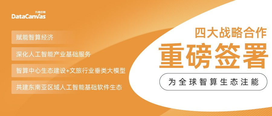 九章云极DataCanvas公司与国际领先的新加坡科技企业Krakatoa Tech公司签署《携手共建东南亚区域人工智能基础软件生态》战略合作协议。根据协议,双方将合作推动打造技术领先的、自主可控的创新型智算中心软件操作系统和人工智能平台,进一步促进东南亚区域的通用大模型、垂直业务大模型及小模型等人工智能技术创新应用及产业智能化转型,联合印尼电信Telkomsel共同打造具有东南亚区域影响力的人工智能基础软件创新示范区。