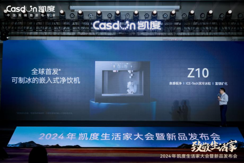其中,凯度嵌入式制冰净饮机Z10作为现代家居的新宠,以其卓越的性能和人性化的设计,成为了全场新品发布会的焦点之一。凯度率先在嵌入式净饮机搭载了Ice-Tech深冷冰粒科技,打造出首款会制冰块的嵌入式净饮机,能够6分钟急速制出冰块,比8-12分钟的专业制冰机效率还快上一倍,真正实现24小时冰饮自由。