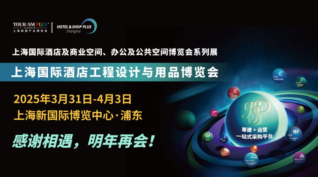 Hotel & Shop Plus上海国际酒店工程设计与用品博览会已在酒店及商业空间领域深耕30余载,旨在打造酒店、商业空间筹建与运营的一站式采购平台。2025年将于3月31-4月3日上海新国际博览中心.浦东举办,将持续打造高质量、高水平的酒店及商业空间建设与运营采购盛会。 展会由中国旅游饭店业协会、中国百货商业协会、中国照明电器协会、住房和城乡建设部 ? 中国建筑文化中心、中国食品土畜进出口商会、上海博华国际展览有限公司联合主办。现场将汇聚卫浴/泳池/桑拿,墙/地面材料、户外设计、室内设计、智慧酒店、照明灯饰、智能控制系统、酒店用品综合、智慧办公、商业空间、商业设计等酒店及商业空间筹建与运营领域各类品牌展商。期待3月与您相约上海新国际博览中心.浦东!不见不散!