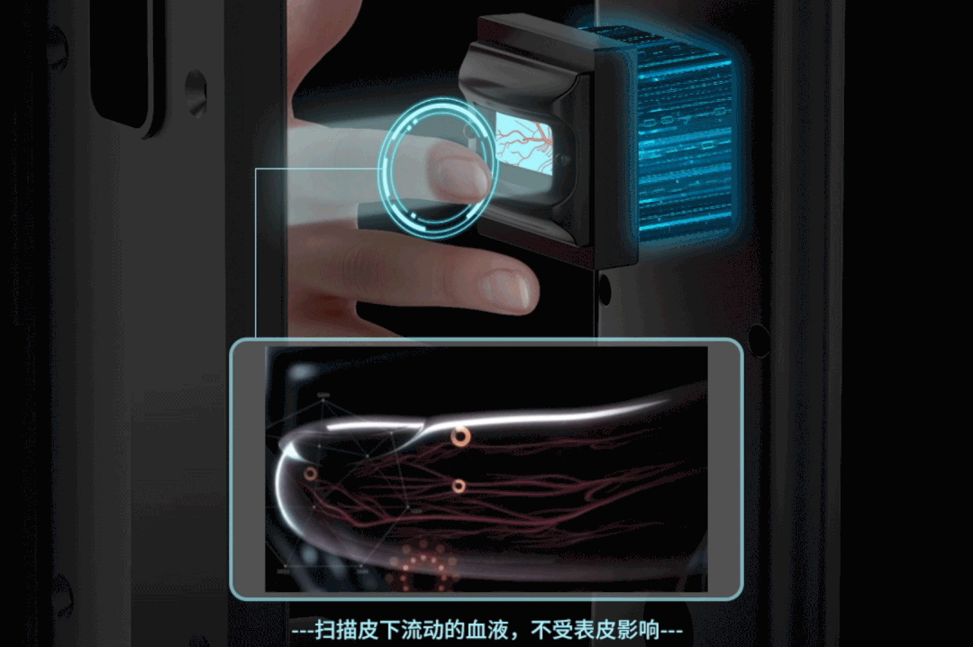 指尖划过时间,经历岁月的洗礼,磨平了指纹,静脉解锁,告别指纹模糊不能识别,手就是你进入家门的钥匙,无惧担忧使用问题。