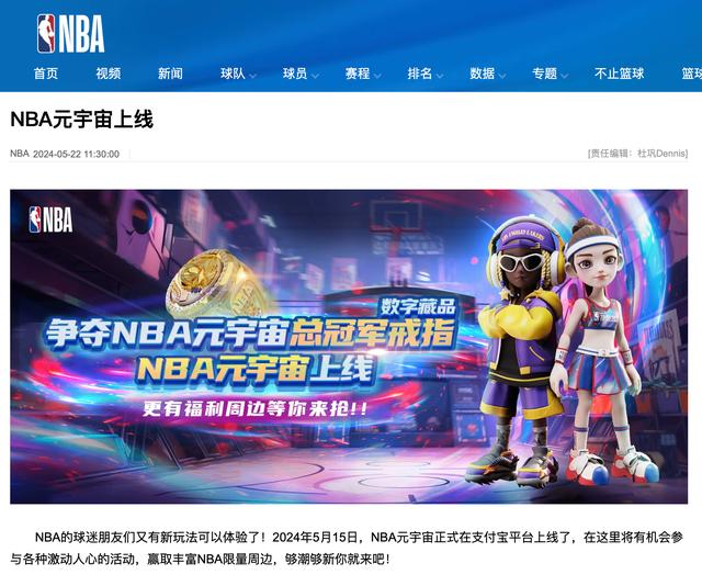 据站长之家5月23日 消息:5月22日,NBA官方宣布,NBA元宇宙上线支付宝,球迷可参与季后赛竞猜、线上投篮,体验NBA更衣室,赢取数字藏品等活动。NBA元宇宙由蚂蚁集团旗下数字藏品平台鲸探承接,已于5月15日上线。截至记者发稿时,9万份NBA数字福利盲盒已经售罄,限定盲盒尚有少部分余量,官方公告表示正在筹备新的主题盲盒。