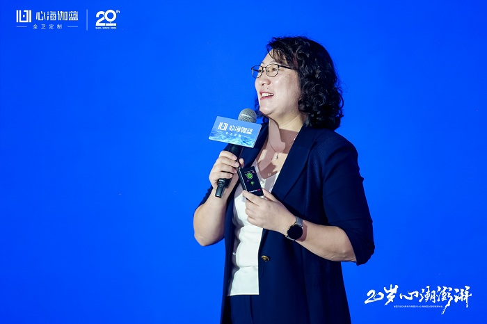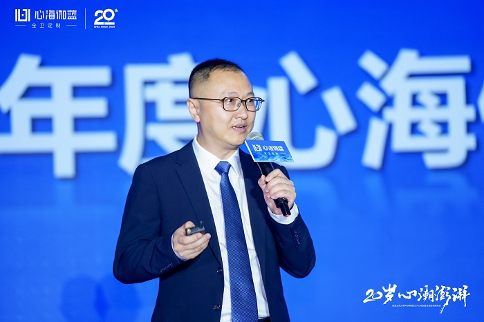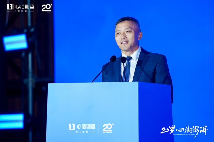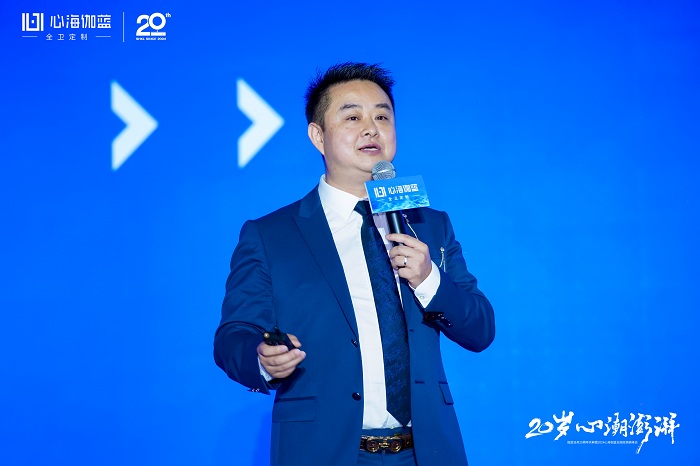 随后,心海伽蓝营销总监包国锋详细分享了过去一年伽蓝的市场表现以及未来的营销策略。他指出,在门店流量受到强烈冲击的当下,伽蓝将进一步推进新媒体引流项目,强化线上线下融合,打造全方位的消费者体验,同时强调了家装整装渠道与持续学习成长的重要性。