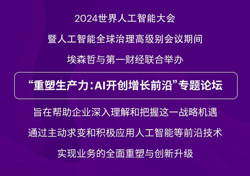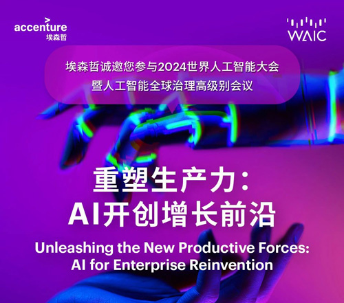 随着全球经济和技术的迅速发展,人工智能(AI)已成为企业转型与创新的核心驱动力。2024年,政府工作报告首次提出“人工智能+”战略,强调AI在构建新质生产力中的核心作用。为此,在本次世界人工智能大会暨人工智能全球治理高级别会议期间,埃森哲特别筹办了“重塑生产力:AI开创增长前沿”论坛,旨在帮助企业深入理解和把握这一战略机遇,通过主动求变和积极应用人工智能等前沿技术,实现业务的全面重塑与创新升级。