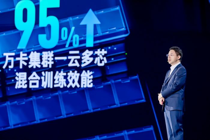 “进入规模化训练阶段,最重要的就是稳定性。”沈抖指出,“大模型训练是一个庞大的单一任务,需要齐步走。一个点出错,整个集群就得停下、回滚到上一个记忆点。而GPU机器又很贵,每停一分钟都是白白烧钱。这就是为什么‘有效训练时长’这个指标很关键,它指的就是机器真正在工作的时间的占比。在万卡任务上,百舸4.0可以保障有效训练时长占比达到99.5%,远高于行业内公布的相关指标。”