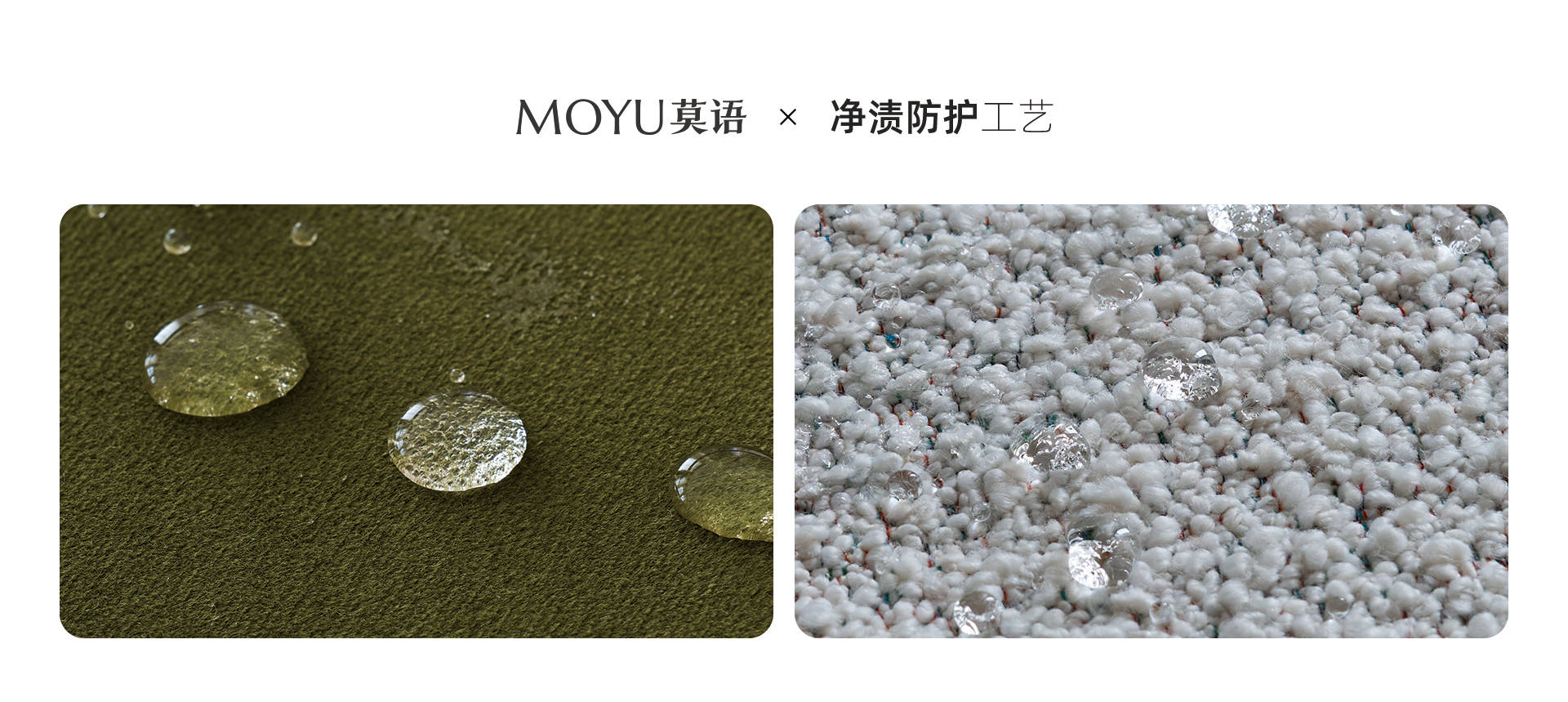 不仅于此,MOYU莫语面料体系中的工艺体系也十分出色。MOYU莫语持续联合上游国际面料合作伙伴,共同研发了多项极具实用性和耐用性的独特工艺,如仿生编织工艺、净渍防护工艺、宠耐工艺等,同时,在肌理和色彩方面也得到大幅提升。