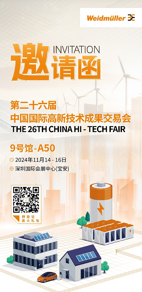 11月14日-16日,在即将到来的2024第二十六届中国国际高新技术成果交易会(高交会)上,魏德米勒将携一系列旨在提升能源效率和降低环境污染的绿色能源解决方案闪亮登场,其应用场景包括储能、氢能、光伏和风电等多个细分行业,全方位助力客户实现经济效益与社会效益双赢,为构建可持续的未来贡献力量。