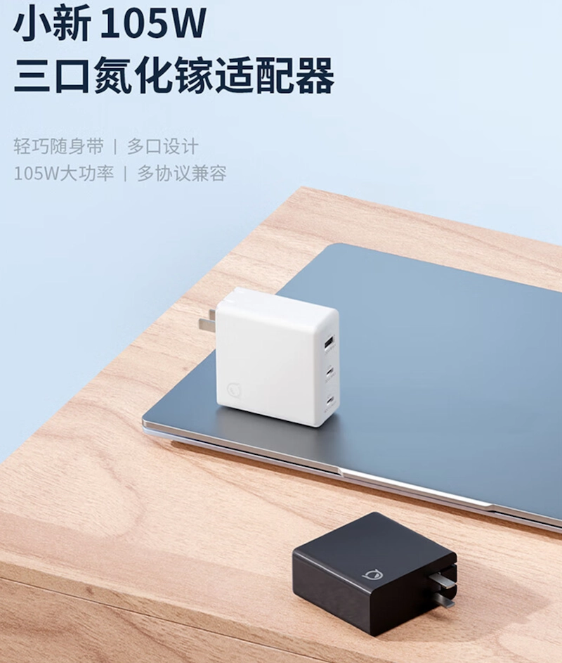联想小新 105W 三口氮化镓适配器 8 月 4 日 0 点开启预约,首发 169 元,8 月 11 日开卖。