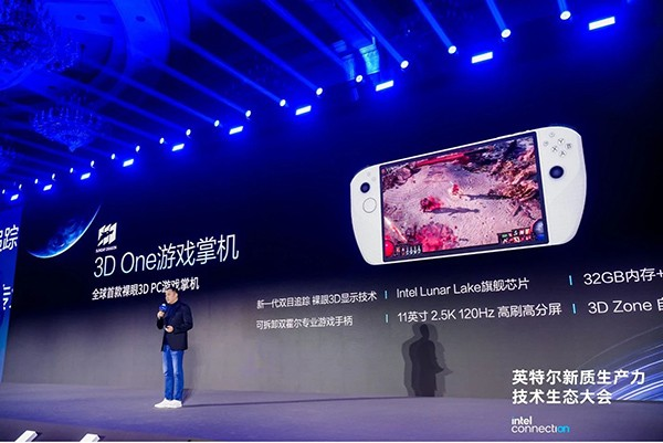 腾讯游戏携手英特尔发布一款全新的探索性游戏设备——Sunday Dragon 3D One游戏掌机。这是一款由腾讯游戏自研、英特尔提供技术支持,旨在探索裸眼3D技术在游戏场景应用的实验性产品。得益于英特尔酷睿Ultra 7 258V的出色性能,搭载11寸2.5K、120Hz 高刷高分屏的3D One游戏掌机可兼顾游戏的流畅运行和高品质3D画面,使玩家无需佩戴辅助设备即可体验身临其境的立体游戏画面。腾讯游戏新互动产品中心持续探索技术与软硬件结合的新互动方式,全方位提升玩家的游戏体验,该产品便是与英特尔共同探索游戏立体新视界的一次创新尝试。