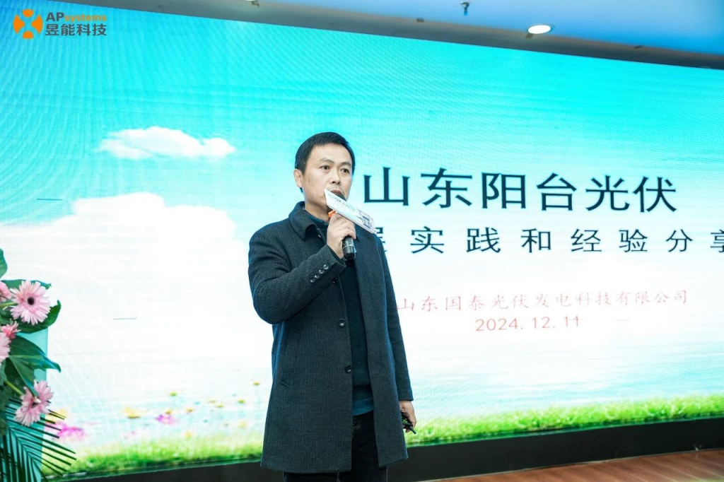 会上,谷阳电力&你好光伏创始人张鹏龙先生,先后发表《阳台光伏·微光储·未来已来》及《燎原计划:阳台光伏产品代理政策发布》主题演讲,以专业深度和独特视角,介绍了昱能科技阳台光伏微型逆变器在技术、应用等层面所展现出的卓越优势,包括即插即用、灵活适应各种安装环境的便捷性以及安全高效、智能监控等,让在场听众深刻领略到这一技术的先进性与前瞻性。同时,他还在代理政策、渠道销售等方面做了详细阐述,解读优惠措施及合作模式等内容,助力共推阳台光伏产品业务发展。