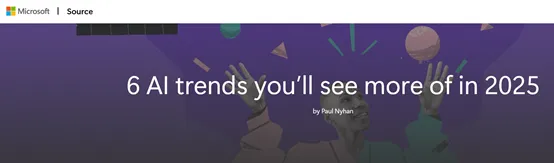 微软在官网发布了2025年6大AI预测,分别是:AI模型将变得更加强大和有用、AI Agents将彻底改变工作方式、AI伴侣将支持日常生活、AI资源的利用将更高效、测试与定制是开发AI的关键以及AI将加速科学研究突破。