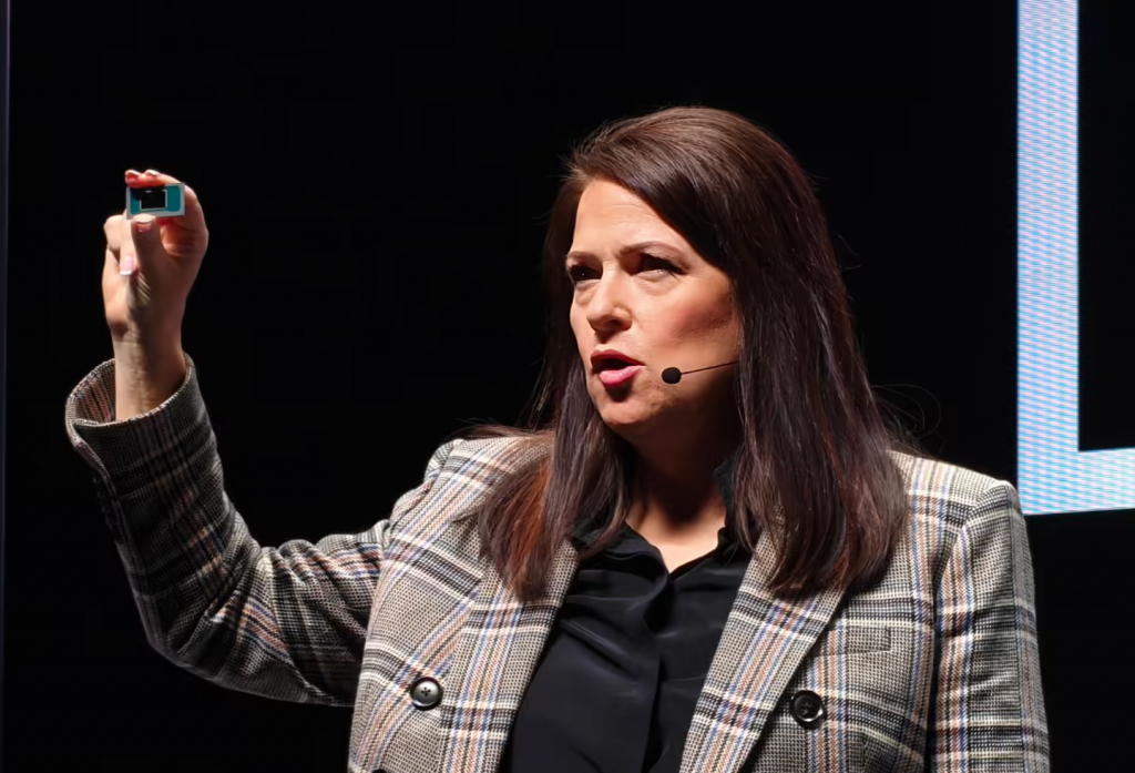 Johnston 还展示了 Panther Lake 芯片的样品,并表示芯片已经在测试中,她对 18A 非常满意。