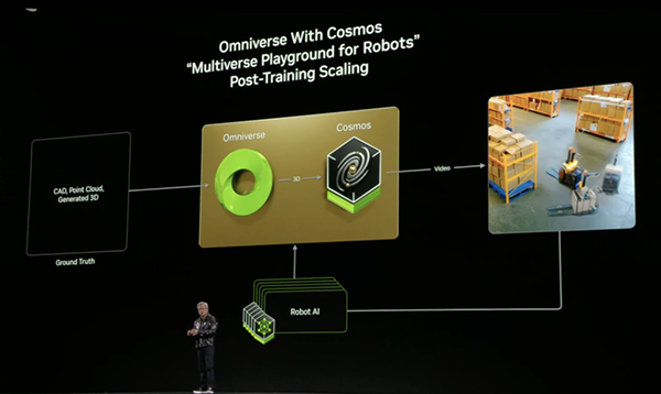 黄仁勋表示:“如果说ChatGPT定义了生成式AI,那么Cosmos将是机器人领域的‘ChatGPT时刻’。”