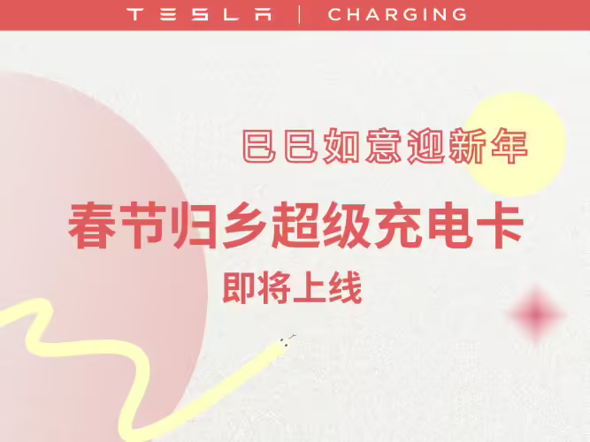 据 IT之家 1 月 10 日消息,特斯拉春节归乡超级充电卡将于 1 月 17 日正式上架售卖,用户可以前往 Tesla App-商店 / 特斯拉小程序-商城内购买。