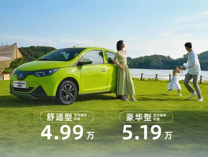 江铃“小麒麟”汽车近期上新了一款吉祥版,售价 4.99 万元起,定位五门四座纯电车。