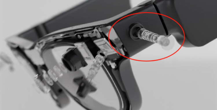 另外Aria Gen 2眼镜现已被Envision公司采用,该公司致力于为盲人或视弱人群研发解决方案,Envision正在探索使用Aria Gen 2眼镜的6DoF SLAM等能力用于增强室内导航和无障碍体验。眼动追踪摄像头:是一种用于捕捉和分析人眼运动信息的特殊摄像头,Aria 2的眼动摄像头位于如下图所在的位置。眼动摄像头是通过发射近红外光等光源,使光线在角膜上形成反射光斑,同时捕捉瞳孔、虹膜等眼部特征的图像。然后运用图像处理算法和数学模型,对采集到的图像进行分析,提取瞳孔中心位置、角膜反射光斑位置等关键信息,计算出眼睛的运动参数,如眼球转动角度、注视点位置等,从而实现对眼动的精确追踪。