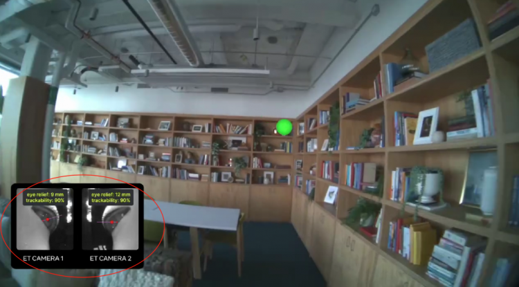 在Aria 2的视频中也介绍到了注意力识别的应用场景,当用户眼睛注视到某个物体的时候,便会对该物体进行识别和介绍。如视频中所展现的(下图左下角),眼镜中具有2颗眼动追踪摄像头,两个摄像头会从不同角度同时拍摄眼睛的图像,获取包含眼部特征和角膜反射等信息的图像数据。这些图像数据会被传输到处理系统进行分析。
