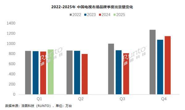 洛图科技(RUNTO)最新发布的《中国电视市场品牌出货月度追踪》报告,详细揭示了2025年第一季度中国电视市场的动态。数据显示,该季度电视品牌整机出货量达到884万台,实现了4.7%的同比增长,这一积极趋势是自去年第四季度“国补”政策实施以来,连续第二个季度出货量增长,并且今年首季度每个月均呈现增长态势。