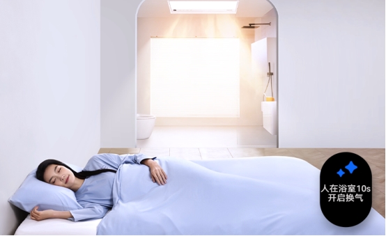 其次“人感换气”则解决了潮湿问题,尤其是梅雨季节,浴室湿气重、异味易堆积,Smart智能人感浴霸通过人感换气功能自动感知有人进入并启动通风,保障每一次踏入浴室,都不会被霉味打扰,真正实现空气管理的“无感智能”;