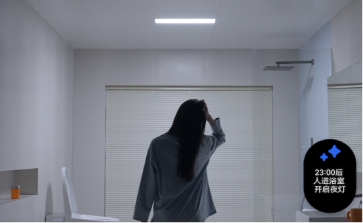 此外,Smart智能人感浴霸还具有“人感夜灯”功能,深夜起身进入浴室,无需摸黑找开关,系统自动点亮柔和主灯与夜灯,为深夜使用场景提供安心照明体验;