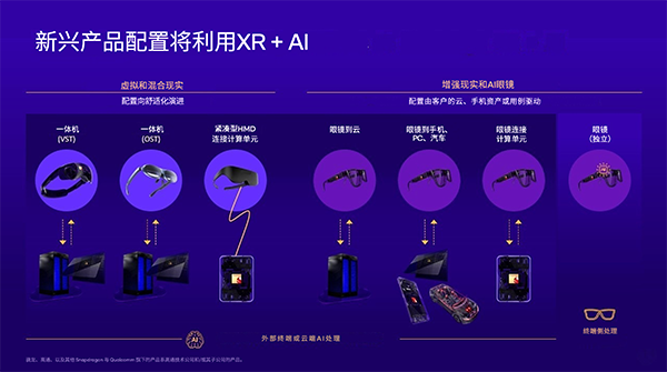 XR头显和智能眼镜的发展方向将不止于一个路径,高通技术公司还提供混合现实处理器,比如同样具有强大终端侧推理能力的第二代骁龙XR2和第二代骁龙XR2+。从足以独立运行AI模型的眼镜设备,到连接手机或附近的小型计算单元(可连接从汽车到平板电脑等一切终端),再到更轻量化的眼镜设备,高通技术公司的产品组合正在为未来可能出现的多种不同的终端形态做好准备。