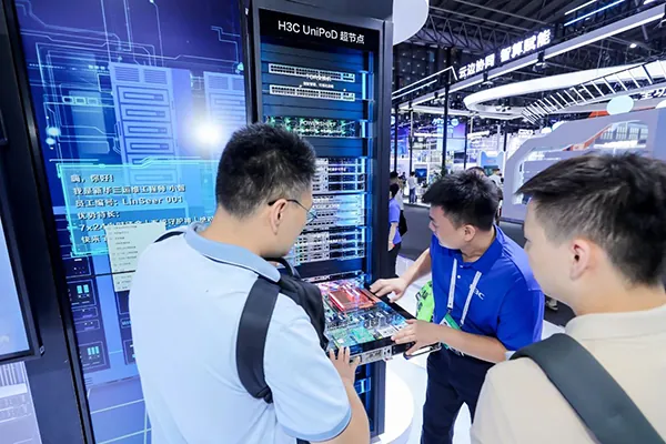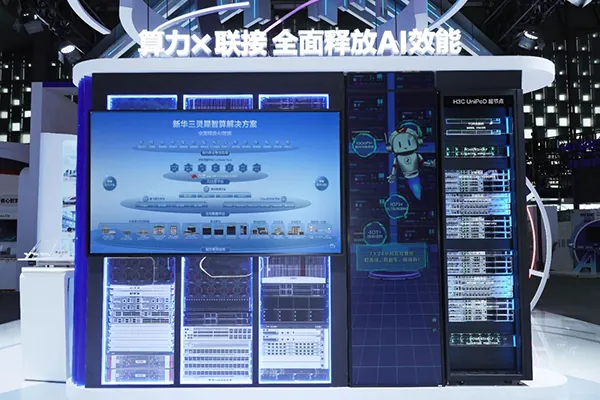 在“AI in ALL”基础设施核心展岛,新华三全景展示了多元澎湃算力、超宽极致联接、算力调度与数据治理、智算安全、智能化运维等六大模块的技术创新,多款全球首发、国内首秀的新产品重磅亮相,为与会嘉宾呈现了一场适配万亿级大模型与超大规模智算场景的科技盛宴。