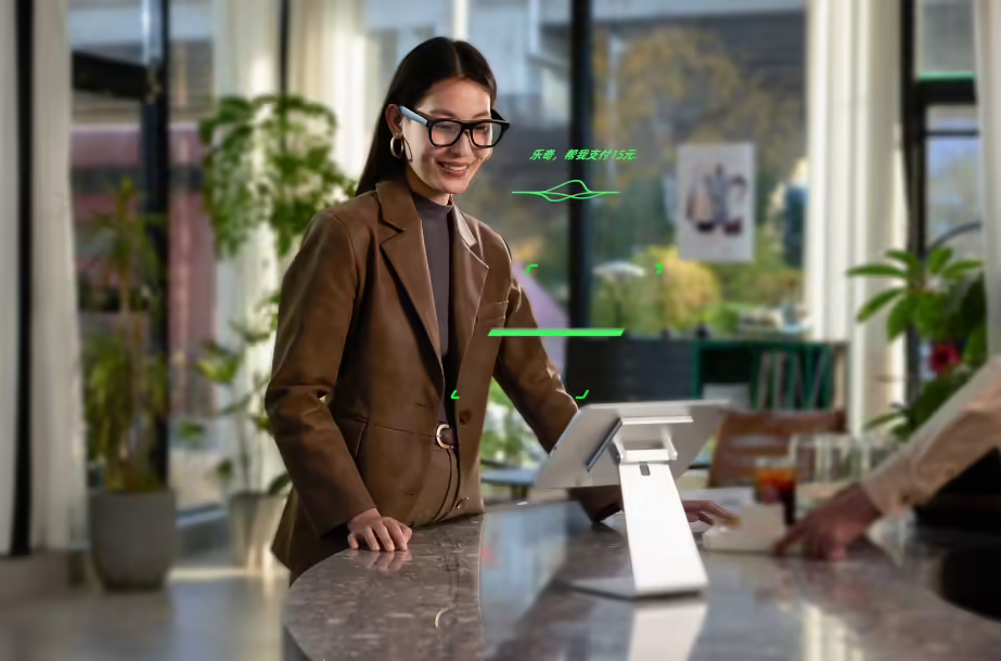 Rokid 还联合支付宝上线全球首个智能眼镜支付产品“看一下支付”,在这一过程中,支付信息直接在眼镜显示屏上呈现,用户无需操作手机。