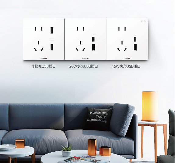 UK1系列有20W、45W快充USB插口插座,无需插头,一线即可保持手机在线,适合安装在床头、沙发旁、书桌边,可满足多种快充需求。
