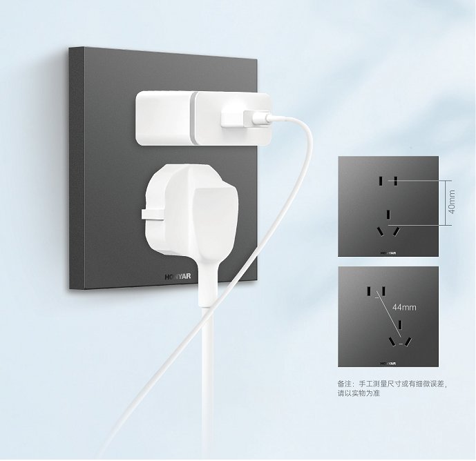 为优化插座的孔位设计,UK1系列间距升级,更加人性化,40mm大间距五孔插座,可满足二、三插头同时使用不打架,完美优化用电空间,保障高效用电。