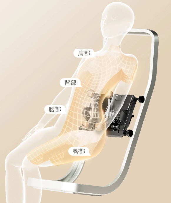 此外,该产品还配备肩部、双手、腿足三处气囊覆盖,气囊伴随按摩进行充放,提供“气浪式包裹挤压按摩”,足底还提供了滚轮揉搓。支持一键零重力模式,用户可体验悬浮无压按摩。