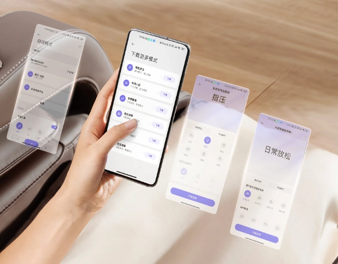 米家智能按摩椅支持 17+N 套按摩模式,其中包括出厂设备端预置 4 套,App 精选 5 套、云端模式 6 套以及自编模式 3 套。除了固有模式外,用户还可以通过米家 App 进行云端模式下载体验以及个性化 DIY。