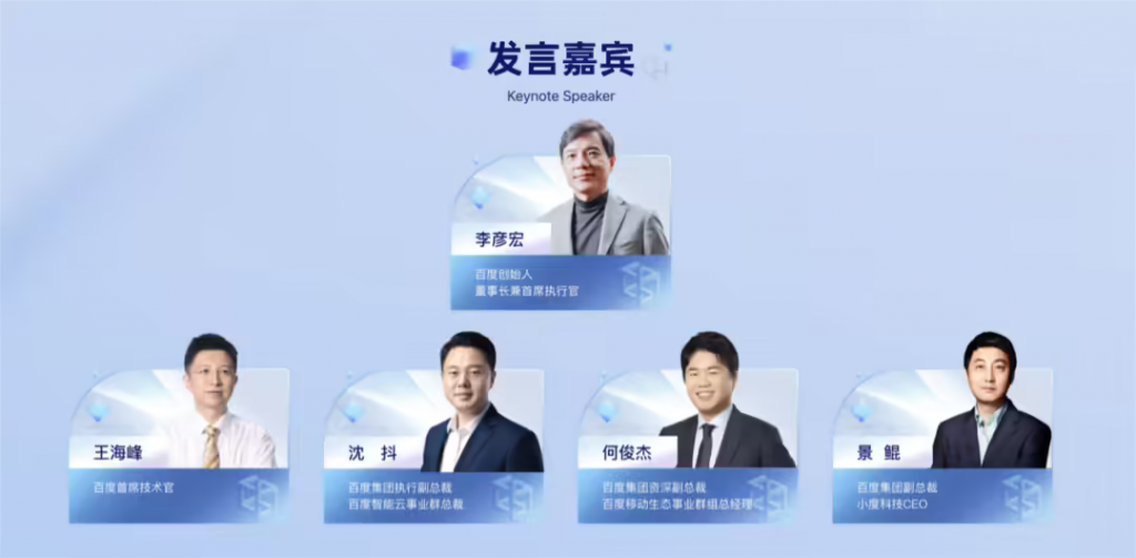 此外,百度首席技术官王海峰、百度集团执行副总裁 & 百度智能云事业群总裁沈抖、百度集团资深副总裁 & 百度移动生态事业群组总经理何俊杰、百度集团副总裁 & 小度科技 CEO 景鲲也将出席主论坛,并带来大模型、AI 原生应用、生成式 AI 生态等内容的最新进展。