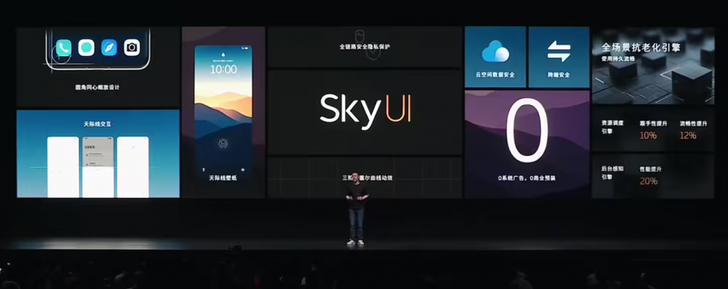蔚来 NIOPhone 手机搭载 SkyUI,采用全场景抗老化引擎、全链路安全隐私保护,李斌表示“0 系统广告,0 商业预装”也是为了提高隐私保护性。