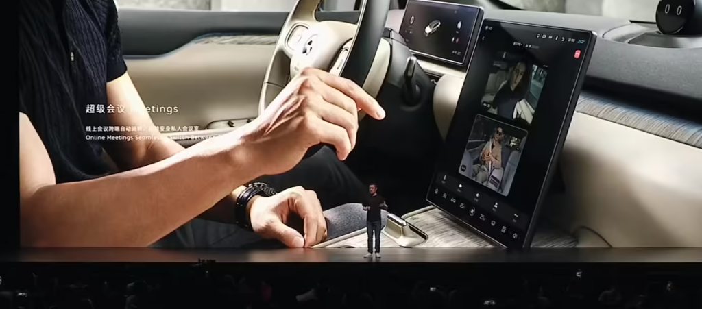 蔚来 NIOPhone 还支持超级会议,可以用汽车的摄像头、麦克风、音响参与视频会议。