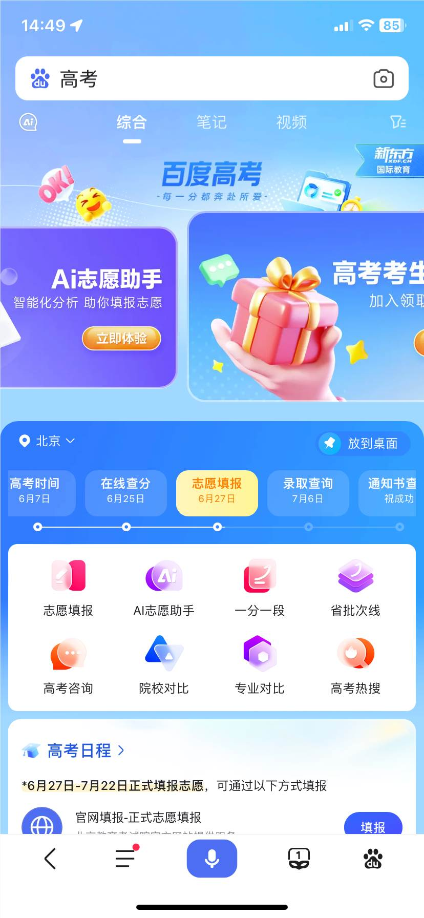 在此方面,已然服务高考全链路的百度,显得信心十足。据悉,百度已联合上百所高校、企业、合作伙伴,构建完整的高考服务生态,持续打磨高考内容及服务能力。