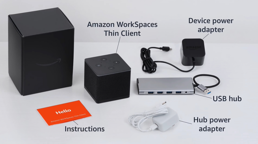 亚马逊推出了一款 WorkSpaces 瘦客户端迷你 PC,号称只有亚马逊 Fire TV Cube 机顶盒大小,能够连接键鼠等外设,还能通过特定的 Hub 额外连接另一台显示器。