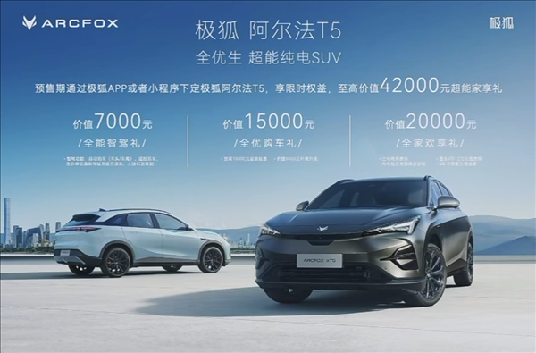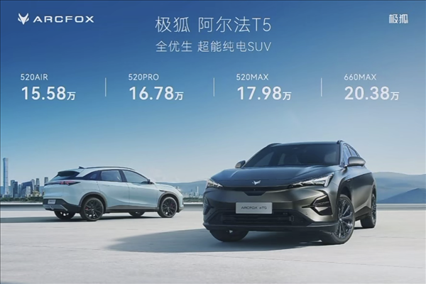 ARCFOX极狐旗下全新车型极狐T5正式开启预售,共推出4款车型,预售价区间为15.58-20.38万元。