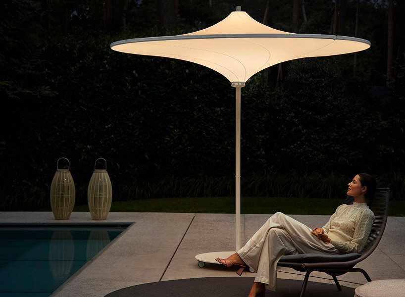 hulasol的专利折叠机制带来了大胆的视觉效果,对太阳伞功能的传统方式提出挑战。它可以折叠成一个紧凑和有机的形状,独具美感。它还提供了时尚放松的概念。“在蔚蓝的天空下创造平静的阴凉,或在星空下创造舒缓的照明。无论你想从你的户外空间寻求何种宁静的心情,hulasol的独特多功能性都会为您带来惊喜。现在,无论白天还是晚上,你可以全年享受你的池畔、花园或天井。”品牌这样写道。