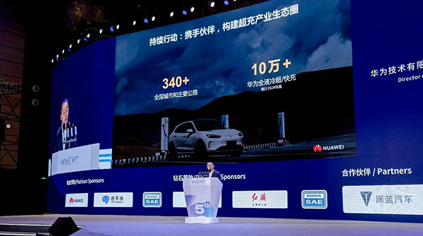 在海口举行的2023世界新能源汽车大会(WNEVC)上,华为数字能源技术有限公司总裁侯金龙发表了“全面高压化,全面超快充,推动新能源汽车与充电基础设施高质量协同发展”主题演讲。
