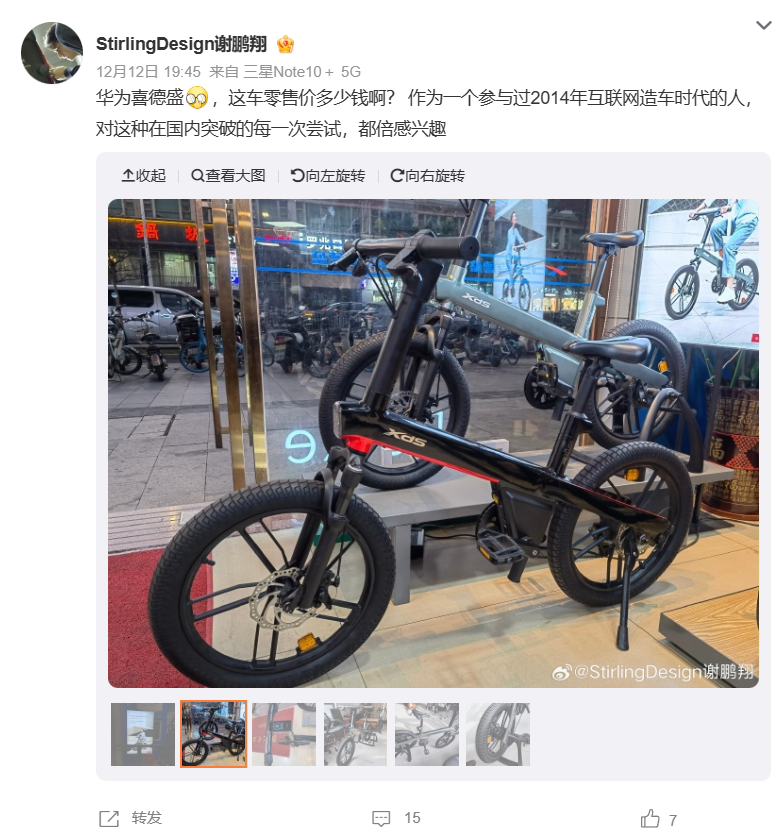 据悉,华为智选喜德盛“都市骑行家”的发售价为 6999 元。