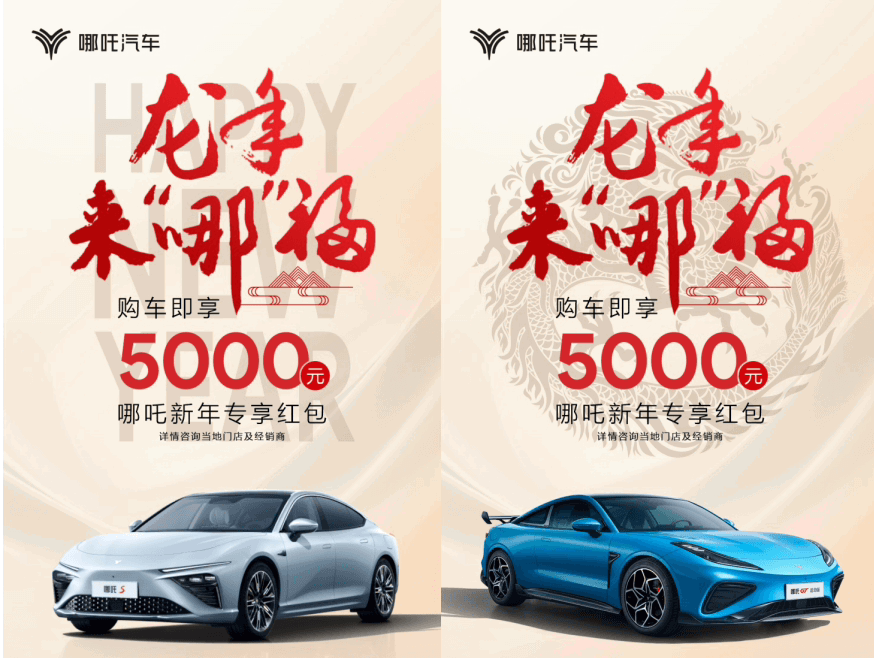 哪吒汽车推出了龙年来“哪”福活动:2024 年 1 月 1 日 —1 月 31 日,下定哪吒 AYA / 哪吒 X / 哪吒 S / 哪吒 GT,即可享受 5000 元哪吒新年专享红包好礼。IT之家注意到,哪吒汽车还针对这四款车型,分别推出多重购车福利。