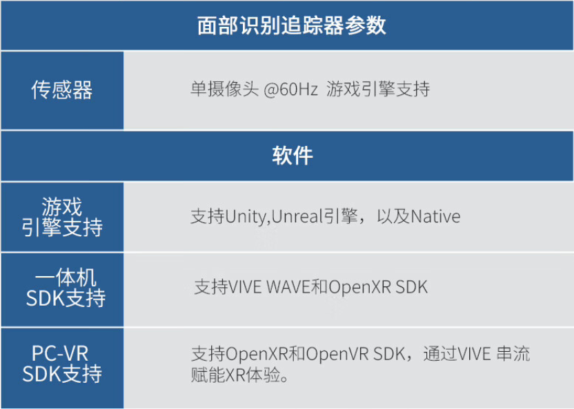 产品可作为配件磁吸到 VIVE XR 精英套装上,带来眼部追踪和面部追踪功能。产品具有瞳距自动调节功能,内置马达,可以为不同的用户调节透镜的距离,并且不需要任何线缆,而是采用 Type-C 接口连接。