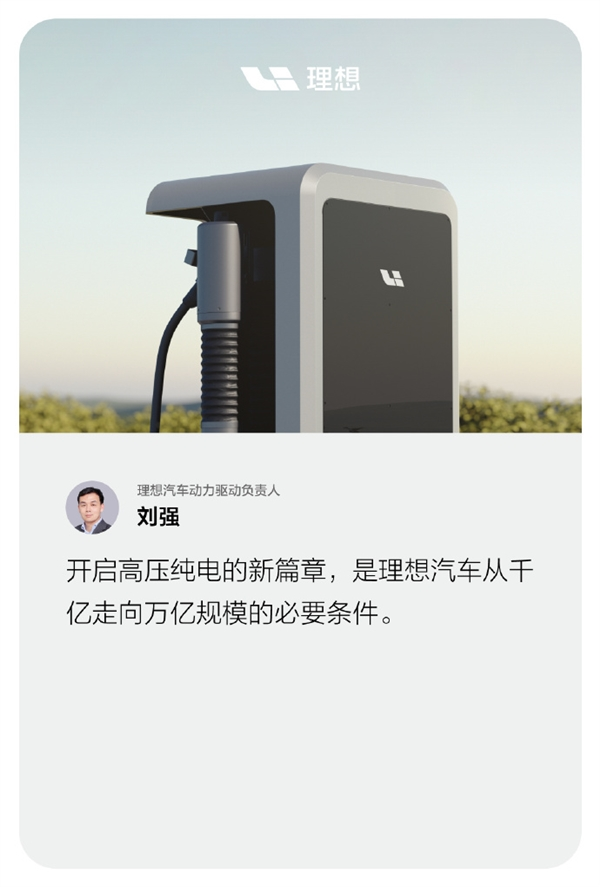 理想汽车动力驱动负责人刘强称:创造移动的家,创造幸福的家”必须要攻克纯电动车补能难题。在他看来,开启高压纯电的新篇章,是理想汽车从千亿走向万亿规模的必要条件。