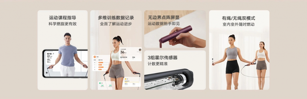 具体来看,米家智能跳绳搭载隐藏式点阵数显,无边界设计与手柄融为一体,运动数据抬手即见;内置 360° 精工轴承,可减少跳绳卡顿、绊脚问题。