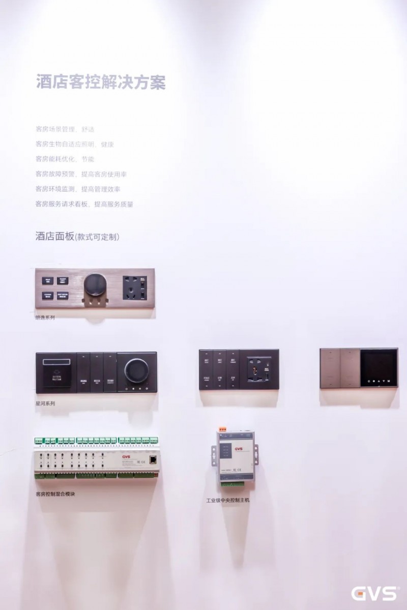 数字化正为酒店业带来变革,智能客控系统成为酒店标配。针对酒店领域,GVS 也推出了RCU酒店客控解决方案及系列新品。