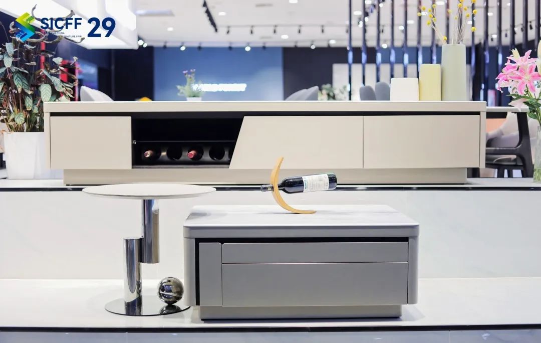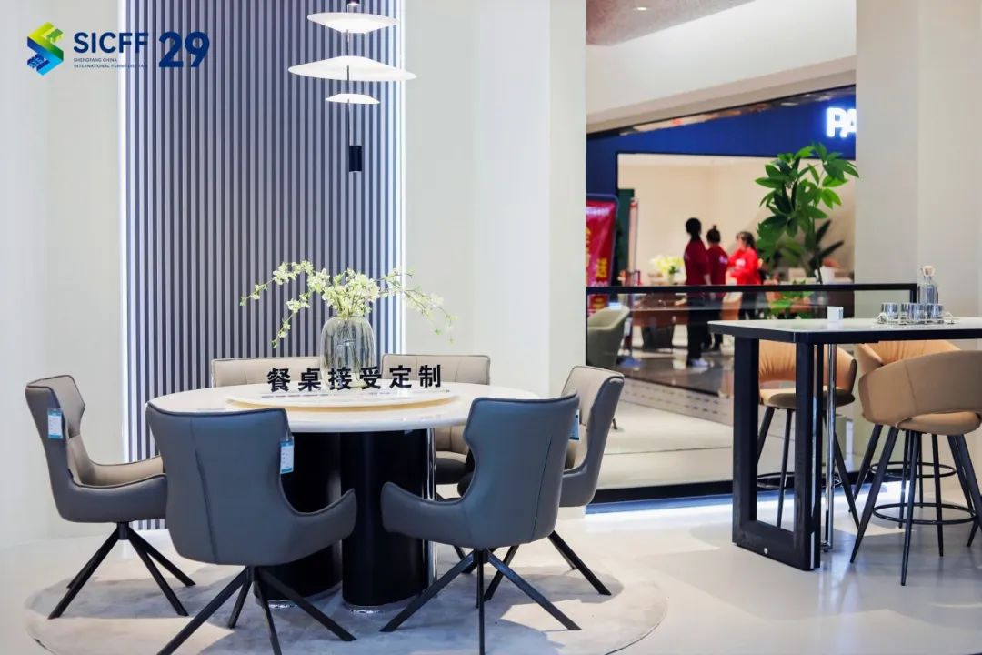 2024年两厅家具紧随潮流,台面材质涵盖奢石、超晶石、钢化玻璃、肤感岩板等,运用5D打印技术令纹理设计更立体通透;休闲家具采用水貂绒、生态真皮、硅胶皮等亲肤面料,舒适度持续提升。