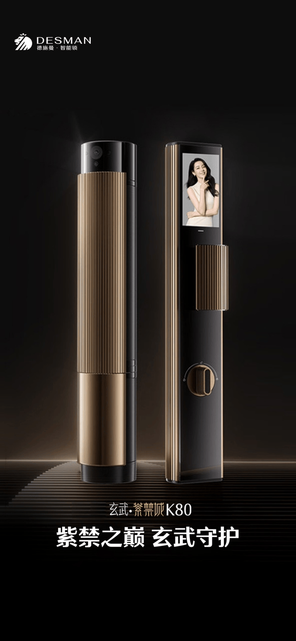 发布会现场,德施曼全新高奢旗舰款玄武•紫禁城K80重磅首发,作为首个与紫禁城IP联名的智能锁产品,重新定义“高奢智能锁”。